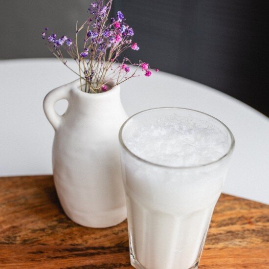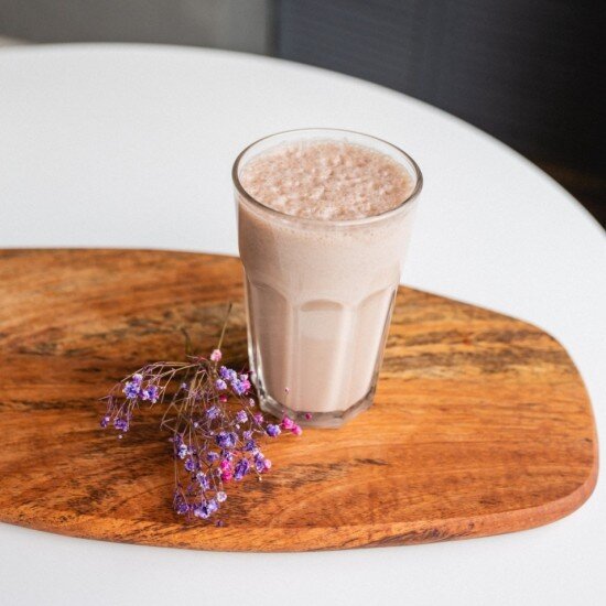 Состав: Мороженое пломбир ваниль, молоко и клубничный топинг